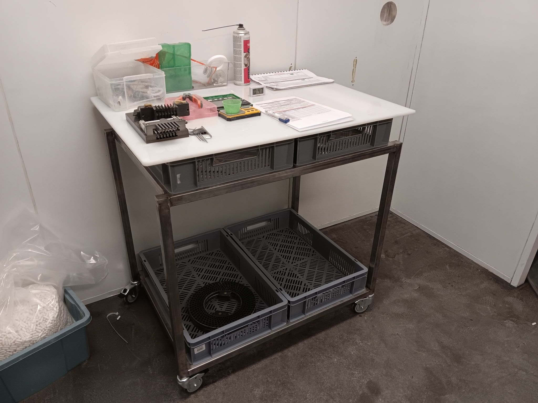 Intégration de bacs, étagères réglables, roulettes haute résistance, tiroirs ou supports pour écrans et outils.
